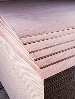選用優質的桉木單板通過涂膠后,按木紋方向縱橫交錯配成板坯,再經過熱壓而成。膠合板能提高木材利用率,是節約木材的一個主要途徑。